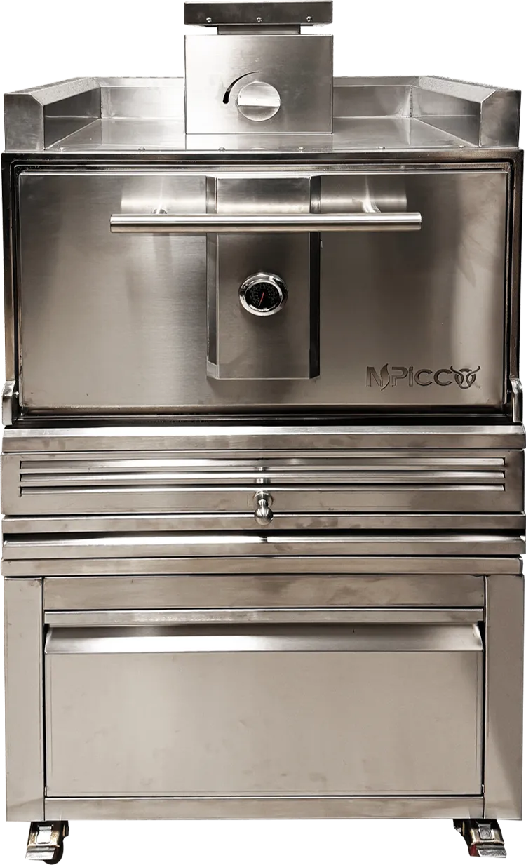 Le Piccante est un four à braise professionnel conçu pour tirer le meilleur du charbon de bois en cuisine. Grâce à sa structure en acier inoxydable, son corps isolé et sa façade en fonte, il garantit stabilité thermique, réduction de la consommation de charbon, et cuissons vives et variées.