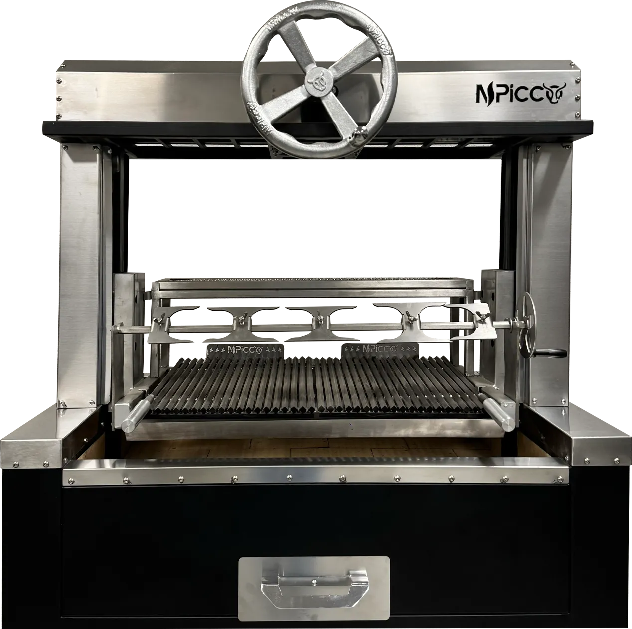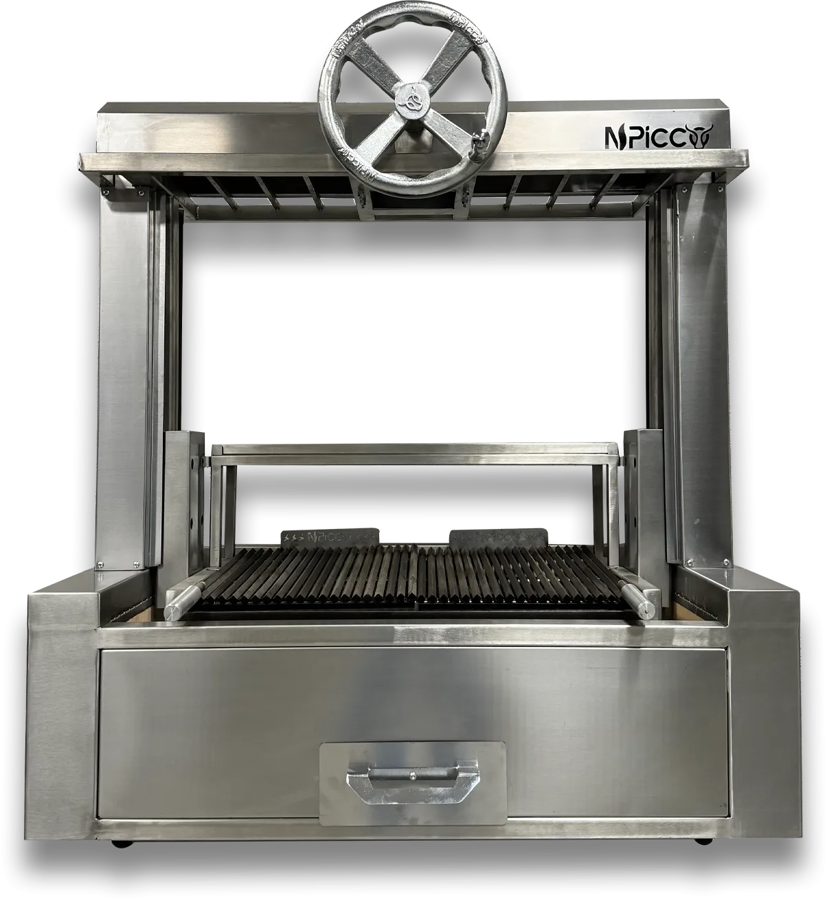 Inspiré des célèbres parrillas argentines, le Pienero est un grill à bois ou charbon en version plan de travail, idéal pour une installation directe sur meuble ou surface inox.